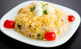 La preparazione di questa insalata di verdure non richiederà molto tempo. Succosa, croccante, con un condimento leggero, questa insalata sarà adatta sia per una cena in famiglia che per una tavola di festa.